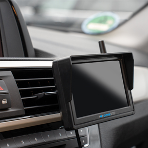 SIe können den Monitor entweder an der Frontscheibe, dem Armarturebrett oder an den Lüftungsschlitzen montieren. Dazu erhalten Sie 2 Halterungen im Lieferumfang.